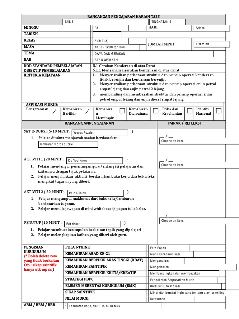 Templet Rph Ts25 Sains Ting 5 Pdf